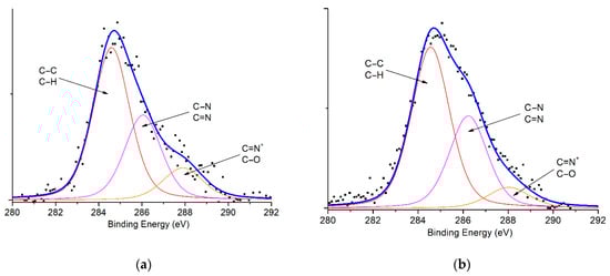 C1s scanning spectra of samples: (a) CTAB-Mt and (b) PAni@CTAB-Mt.