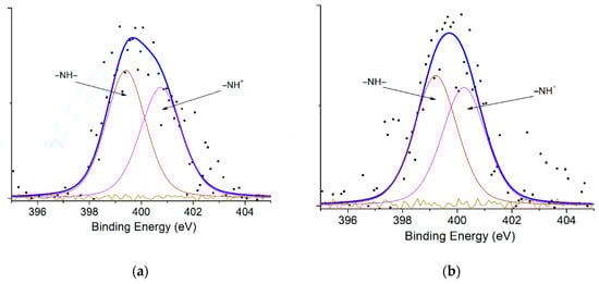 N1s scanning spectra of the samples: (a) CTAB-Mt and (b) PAni@CTAB-Mt.