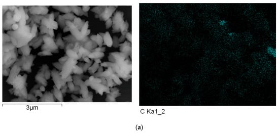 Energy dispersive spectroscopy (EDS) measurements were performed using a Hitachi S-4800 (HITACHI, Tokyo, Japan). The obtained sample was washed with deionized water, deposited on Al foils, and dried at room temperature. The sample for EDS measurements did not need to have a layer of Pt deposited on its surface. The EDS mapping data were obtained.