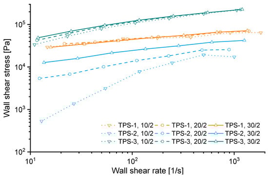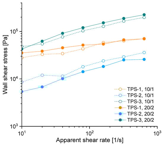 3.3. Effect of Capillary Length (L) on Rheometric Data