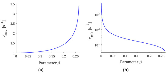 In the special case, when and , the double root is the inflection point of the increasing function , thus spectrum (13) increases for all , while is a monotonically decreasing function. Thus, bearing in mind inequality (A29) corresponding to , the local extrema there exist, if and only if inequalities