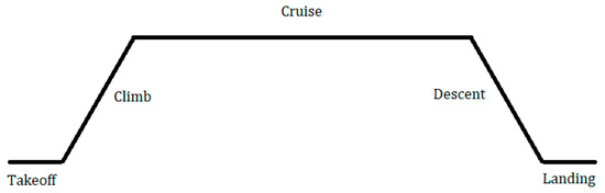 UAVs are designed to successfully complete each step in their flight missions. As demonstrated in Figure 1, a typical flight mission consists of 5 steps: takeoff, climb, cruise, descent, and landing [16,17]. Takeoff is the horizontal distance the UAV will travel on the ground before it is able to lift off. The climb step is when the UAV rises in altitude until it reaches its operating altitude. At the cruise step, the UAV has reached this altitude and maintains level flight. When the mission is coming to an end, the UAV will begin the descent, which involves the UAV decreasing in altitude until reaching the ground. Once it reaches the ground, it will begin the landing step, in which it again travels vertically on the ground until it comes to a complete stop [16].