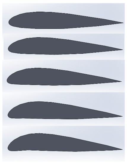 The next required input is the camber position and reflex. The camber can be defined as the curvature seen in the airfoil shape [16,18]. Whether or not the camber is reflexed then depends on the requirements of the UAV and can be decided by the designer. Next, the thickness must be input. Thickness is reflected as a percentage, which comes from the ratio between the thickness and the chord. Generally, a low-speed, high-lift requirement uses a thickness between 15% and 18%, high-speed and low-lift requirements use a thickness between 9% and 12%, and supersonic requirements use a thickness between 3% and 9% [16].