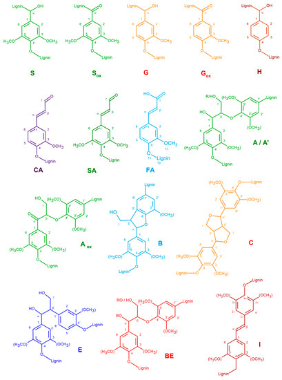 - Vinciguerra, V.; Spina, S.; Luna, M.; Petrucci, G.; Romagnoli, M. Structural analysis of lignin in chestnut wood by pyrolysis-gas chromatography/mass spectrometry. J. Anal. Appl. Pyrolysis 2011, 92, 273–279. [Google Scholar] [CrossRef]