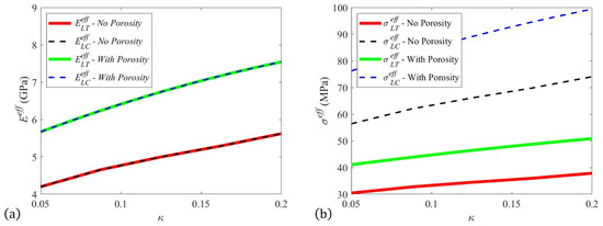 where in the present study was used. Equation (23) was used to find the effective stiffness values , , and and the effective strength values , , and .