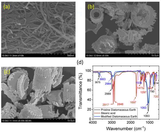 2.3. Stearic Acid Treatment of Diatomaceous Earth