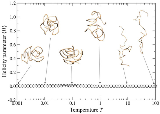 - Varshney, V.; Carri, G.A. Coupling between Helix-Coil and Coil-Globule Transitions in Helical Polymers. Phys. Rev. Lett. 2005, 95, 168304. [Google Scholar] [CrossRef]