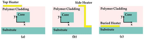 Cross sections of the waveguides with (a) top heater, (b) side heater, and (c) buried heater.