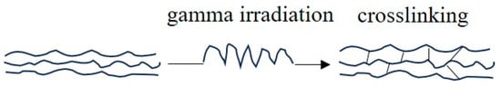 NBR belongs to the cross-linking type of rubber when exposed to high-energy radiation; the degree of cross-linking seriously influences the properties of NBR [28], and, in most cases, cross-linking increases the strength and heat resistance while decreasing the elasticity, whereas the destruction of the polymer chains decreases the strength [29]. Shershneva explored the effect of gamma irradiation on industrial-grade NBR, and they found that the dose of gamma irradiation can impact the molar mass distribution of NBR, the molecular weight has a maximum of 10–20 KGy and decreases at higher doses, and the molecular weight rises constantly with an increasing irradiation dose; it was shown to provide a good understanding of radiation-induced cross-linking and the following processes in cross-linked polymers [30].