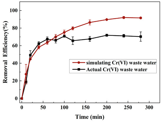 3.3.6. Cr(VI) Removal from Real Wastewater