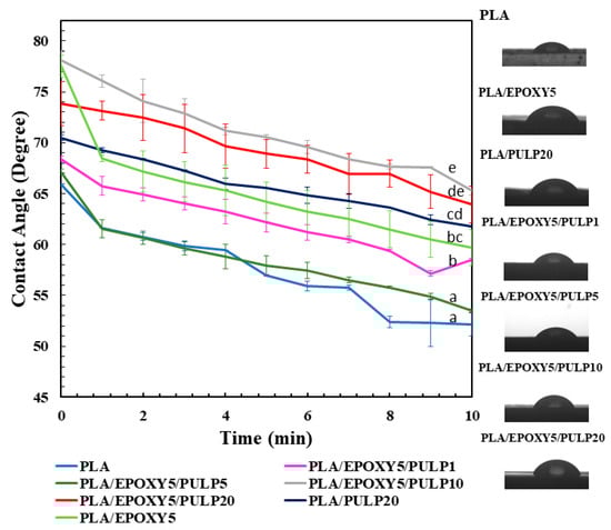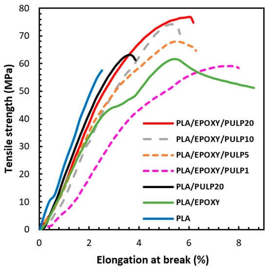 | PLA/EPOXY/PULP10 | 51 | 104 | 161 | 18.7 | 33.0 | 18.1 |
