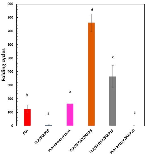| PLA/EPOXY/PULP1 | 51 | 100 | 161 | 29.6 | 36.1 | 7.4 |