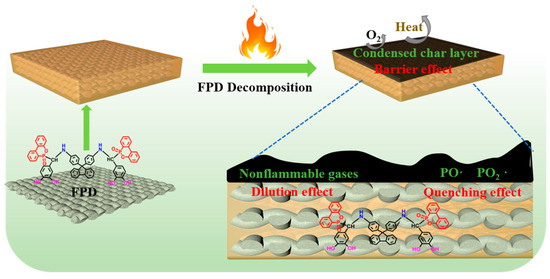 The schematic diagram of the possible flame-retardant mechanism of ramie fiber/epoxy composites modified by FPD.