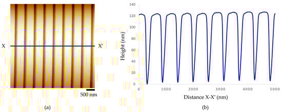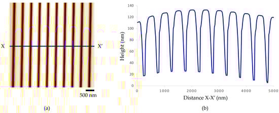 Nanogroove patterns on a master mold (a) AFM image and (b) height profile.