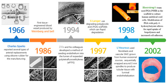This figure presents a chronological visual journey through the early explorations in artificial blood vessel development. It illustrates the progression and evolution of various strategies over time, providing a foundational understanding of the potential of bacterial cellulose in this field. The figure also highlights the emergence of porous materials as a promising avenue to emulate the extracellular matrix (ECM) and promote dynamic cell growth. The images in the figure above are excerpts from the articles cited [20,22,25,26,28], corresponding to the references in the text above.