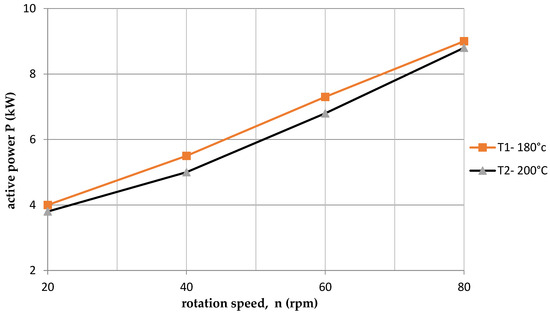 - Processing temperature influences the active power value. At a lower temperature, the active power values were higher. This phenomenon is related, with resistances and clogging of the cochlea.