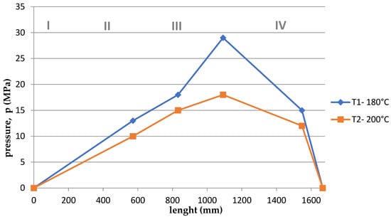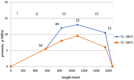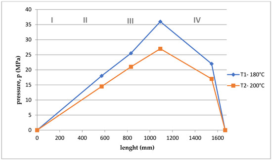 - The processing temperature affects the pressure value. At a lower temperature, the pressure was higher.