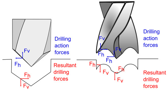 Resultant forces generated for the 118° twist drill and the brad and spur drill [2].
