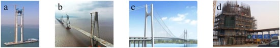 Projects of substantial magnitude in high-strength marine concrete: (a) The vast expanse of the Deep Zhong Ling Dingyang Bridge; (b) The Shanghai–Ningbo Ship Grand Passage Project; (c) Pictorial representation of the Lion’s Roar Bridge; (d) The Yellow Reed Sea Bridge.