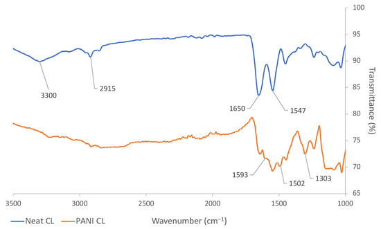 ATR-IR results of neat and PANI-coated CL.
