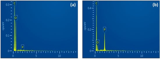 EDX spectrum of (a) capsules without Cyanex 923 and (b) capsules functionalized with 15.5% of Cyanex 923.