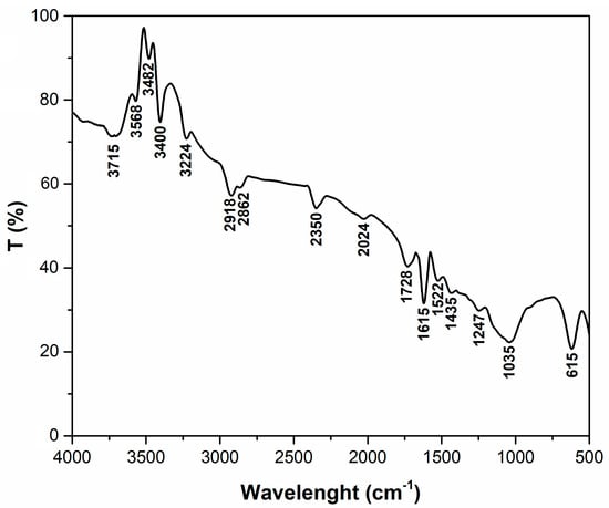 Table 1) indicates that they belong to functional groups that can interact with crystal violet dye; these groups are specific to the main constituents of the adsorbent, namely, cellulose, hemicellulose, and lignin. The correspondence of the peaks identified with the specific functional groups is as follows: 3715 cm
