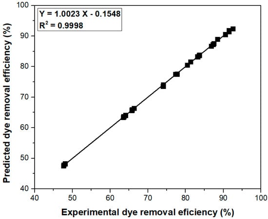 ANOVA (general linear model) analysis was used to evaluate the Taguchi method results and to calculate the percentage contribution of each controllable factor on the crystal violet removal efficiency. The required mathematical calculations were conducted with the Minitab 19 Software (version 19.1.1, Minitab LLC, State College, PA, USA).