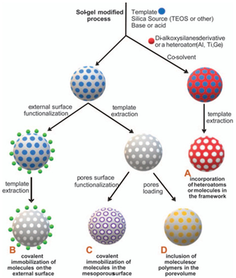 - Hoffmann, F.; Cornelius, M.; Morell, J.; Fröba, M. Silica-Based Mesoporous Organic–Inorganic Hybrid Materials. Angew. Chem. Int. Ed. 2006, 45, 3216–3251. [Google Scholar] [CrossRef]