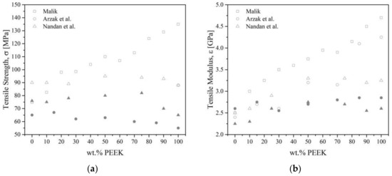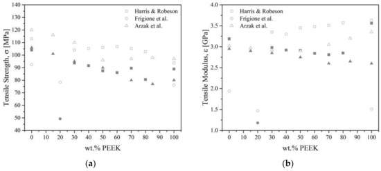 - Arzak, A.; Eguiazábal, J.I.; Nazábal, J. Mechanical performance of directly injection-molded PEEK/PEI blends at room and high temperature. J. Macromol. Sci. Part B 1997, 36, 233–246. [Google Scholar] [CrossRef]