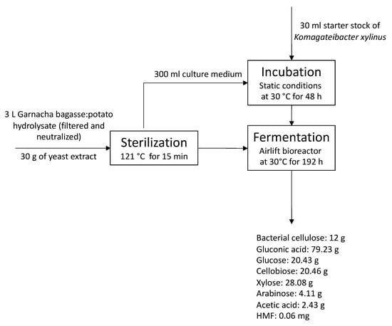 - Cerrutti, P.; Roldán, P.; García, R.M.; Galvagno, M.A.; Vázquez, A.; Foresti, M.L. Production of Bacterial Nanocellulose from Wine Industry Residues: Importance of Fermentation Time on Pellicle Characteristics. J. Appl. Polym. Sci. 2016, 133, 43109. [Google Scholar] [CrossRef]