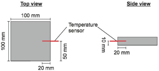 Position of the temperature sensor inside the plate geometry.