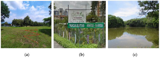 Areas selected for sampling and collection of degradation media: (a) soil; (b) compost; and (c) water.