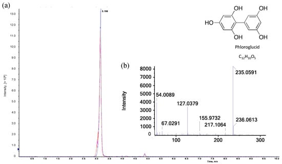 reaction reagent with AX. (b) ESI-MS/MS spectrum of [M+H]+ ion (m/z 235.06) of phloroglucide in the hydrolyzed reaction reagent.