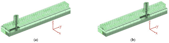 - According to Figure 1b, there is symmetry in the centre of the fibre nozzle and along the y-axis (axis of movement of the fibre nozzle). Due to this symmetry property, only half of the process zone is modelled in the FE model.