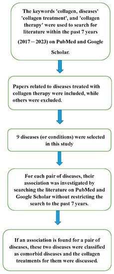 The methodology flowchart is provided in Figure 1. The details of collagen treatment for comorbid diseases are provided in the next section.