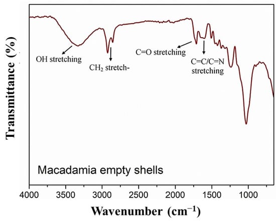 FTIR spectrum of neat macadamia empty shells. Reprinted with permission from Ref. [15]. Copyright 2017, Elsevier.