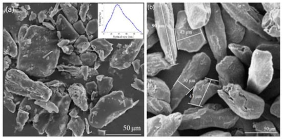 Morphology and particle distribution of macadamia nutshell particles: (a) Before treatment and (b) After treatment with NaOH/silane. Reprinted with permission from Ref. [27]. Copyright 2020, Xiaohui et al.