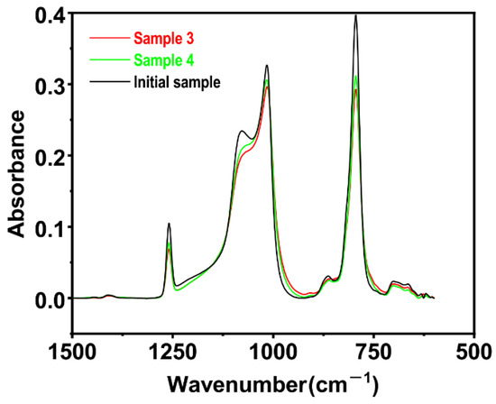 Infrared absorption spectra for the initial sample and samples 3 and 4.