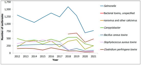 Number of foodborne diseases due to foodborne outbreaks in 2010–2021 Reprinted with permission from ref. [].