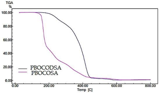 TGA thermograms of PBOCOSA and PBOCODSA.