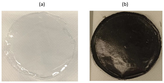 In previous works, films containing CTA as the polymer and different types of plasticizers were prepared by solvent casting and were tested for the extraction and preconcentration of organic pollutants under exhaustive extraction conditions [15,16]. A mixture of 70% of CTA and 30% of plasticizer gave flexible and homogenous films, which were transparent and mechanically stable, as F1 in Figure 1a. Using the same solvent casting procedure, films using CTA and 10% MWCNTs were satisfactorily prepared (F3, Figure 1b). The slow evaporation of the solvent under mechanical agitation (in an orbital stirrer) was crucial to prevent the aggregation of MWCNTs and to obtain a quasi-homogenous film, but less flexible compared with F1. A film containing a mixture of plasticizer and MWCNTs was also prepared (F2 in Table 2) to evaluate the effect of the plasticizer on the homogeneity of the film and the extraction performance. No differences were observed in comparing F2 and F3 with regard to the preparation behaviour and the characteristics of the film as observed by the naked eye. The F2 film, containing a mixture of both plasticizer and MWCNTs, showed intermediate mechanical behaviour.