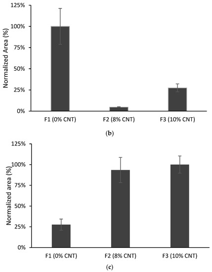 Considering the results for the three compounds as a whole, the films with 10% MWCNTs seem to be a promising choice in TFME to avoid the use of plasticizers. Driven by these considerations, this formulation was used in the following experiments.
