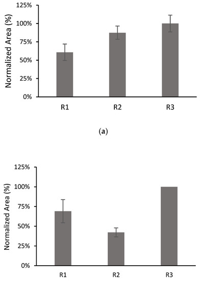 The dependence of the results on the film preparation may be a factor limiting the repeatability of the method. For this, the behaviours of three films with each composition were compared by performing three replicate microextraction experiments with each film (denoted as R1, R2 and R3 in Figure 7). From these experiments, the inter-batch RSDs and intra-bath RSDs were calculated.