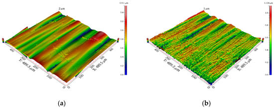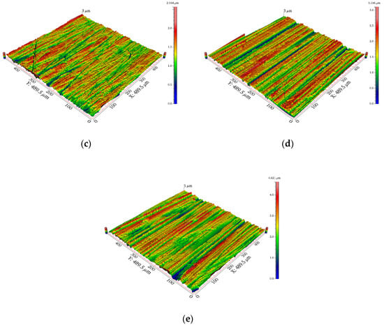 The surface roughness and topography of the cavity are shown in Table 3 and Figure 4, respectively. The surface roughness of the cavities was the mean value of the surface roughness of points A, B and C.