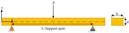 where defines the tangent to the initial line portion of the load–displacement curve. A schematic illustration of a simply supported beam being loaded with a concentrated load from the centre of the support span is given in Figure 4.