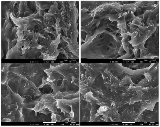 FESEM images of PU-Ester/MWCNT nanocomposites unannealed (a) and annealed at 80 °C (b), 100 °C (c) and 120 °C (d) for 6 h.