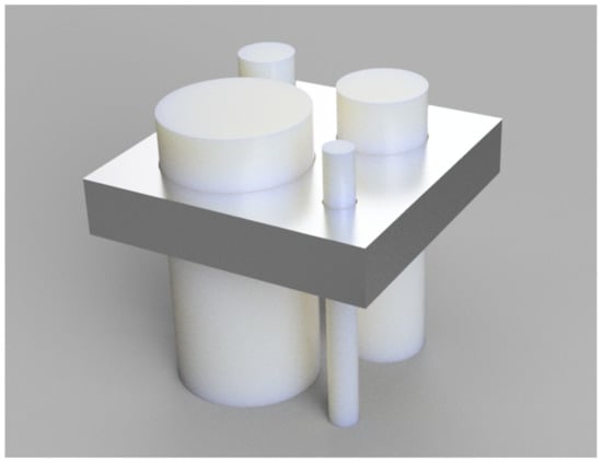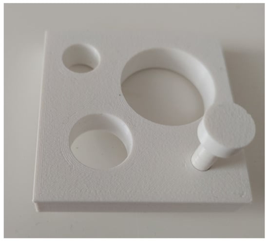 For the deviation measurements, the specimens described in 2.1. were used in two different ways. Firstly, a feeler gauge (Figure 1) that did not go through the autoclaving process was used for each specimen. It was printed on the same printer with the same settings but exceeded the core radius by 0.1 mm. Starting with a test specimen with a diameter of 5 mm, they were tested to see whether they fit through the feeler gauge before and after the autoclaving process to check not only for deformation but also the preservation of symmetry (Figure 1). A replicate of 10 test specimens was used for this test setup.