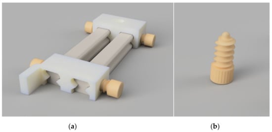 The next step was to test all specimens in whose rotational orientation the deformation from the orthogonal axis was the greatest, as described in the following: A test stand was again designed using computer-aided design, into which the specimens could fit and be freely rotated. In the background, a screen of linear graph paper was used to capture the shadow of the specimen and measure the deviation from its orthogonal pre-autoclaved version. To obtain comparable data, the distance between the screen and the specimens had to be adjusted, which was achieved by using a locking screw with a ball tip and a rail mechanism. The light source and the camera for obtaining the pictures also had to be at a predefined distance from this screen to get high-resolution pictures with fixed focal lengths. The device can be seen in Figure 2. For easier handling and achieving a straight and perfectly focused optical line, the test stand was designed to fit the smartphone G8x (LG Electronics, Seoul, South Korea) in its foldable 90° standing position. In addition, a Bluetooth remote camera trigger was used to obtain 15 images of each test specimen with the angle rotated slightly to the greatest degree of deviation. An example of the obtained results can be seen in Section 3.1.2.
