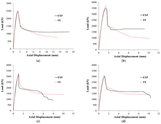 Comparison of experimental and FE results of load-displacement response for test columns *.
