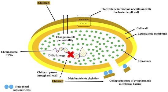 Schematic illustration of antimicrobial mechanisms of chitosan.
